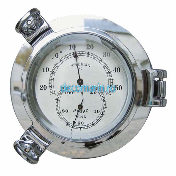 statie meteo cu termometru si higrometru in suport cromat tip hublou
