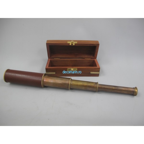 luneta/telescop din alama invechita/piele in cutie de lemn