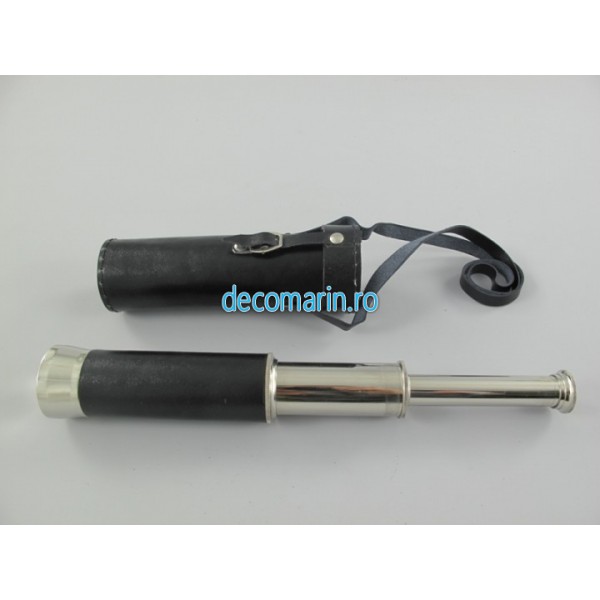 luneta/telescop din alama nichelata in port din piele