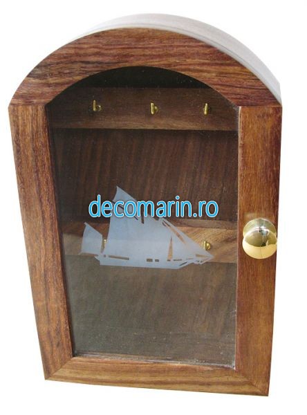 cutie din lemn pentru chei , capac de sticla, design cu barca