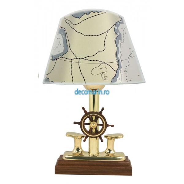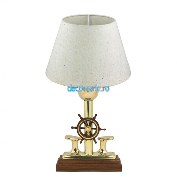 lampa de masa cu bolard din alama si timona de lemn, abajur de iuta inclus,