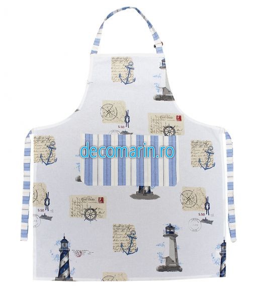 sort de bucatarie din bumbac, model cu tema marina, spalare la 40 de grade